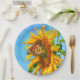 Monarch Butterfly auf einem Sonnenblumenschuss in der Nähe, der an einem Sommertag hell und farbenfroh ist, mit blauem Himmel in Kansas in einem PAPIERPLAT.