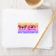 Ce design étiquette de adresse chic présente l'illustration noire d'un papillon monarque aux éclaboussures blanches et aux accents fleuris blancs sur un arrière - plan arc-en-ciel de jaune, rose, bleu et violet. À droite du papillon, vous trouverez votre nom de famille dans une police et une adresse manuscrites modernes que vous pourrez personnaliser. Fait le cadeau parfait pour les amoureux de la nature et des papillons. Conçu par l'artiste © Tim Coffey.