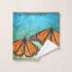 Monarch Butterfly Handtuch Set in grün und blau mit orangefarbenen Schmetterlingen.