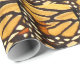 Dieses Verpackungspapier kennzeichnet ein abstraktes Muster eines reizenden Flügels des Monarch-Schmetterlinges (Danaus plexippus) in den Farben von Orange, von Gelbem, Gold, Schwarzes, Braun und Weiß.