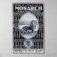 "Reiten Sie einen Monarchen und behalt vor." Schönes schwarz-weißes Fahrradposter - können Sie die Fahrräder sehen? Anfangs sah ich nur den Löwen! Sieh genau hin. Der untere Teil sagt: MONARCH CYCLE MFG CO. CHICAGO. NEW YORK — LONDON