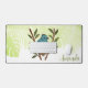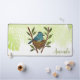 Un monarque à la nappe noire perche dans son nid douillet au milieu de branches feuillues, entouré de feuillage tropical. L’illustration détaillée montre les plumes bleues douces de l’oiseau et la végétation luxuriante de sa maison de la jungle.