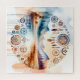 Lebhafte Aquarellbilder mit einer ruhigen Landschaft mit Bergen und einem ruhigen See bei Sonnenaufgang. Im Vordergrund stehen ein traditioneller Teepe und eine kleine Hütte, umgeben von üppigen Bäumen. Die Szene mit komplizierten Stammesmustern, darunter Träumer, Federn und geometrischen Formen, die warme Erdtöne und sanfte Aquarelleffekte enthalten, um die traumhafte Atmosphäre zu verbessern. Das Gesamtbild ruft ein Gefühl der Harmonie mit der Natur und der indigenen Kultur hervor.