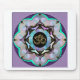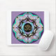 Lila Gold und grüner Mandala mit yin-yangs und OM-Symbolen. Im blauen und tadellosen Grün des Lavendels.