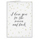 Liebe I Sie zum Mond und zur Rückseite mit Goldconfetti