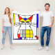 Abstrakte geometrische mondrische Darstellung einer Katze mit weißen, gelben, grauen und roten Quadraten und schwarzen Linien