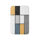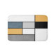 Abstrakte moderne Kunst mit bunten (marineblau, grau, schwarz, gelb, weiß) Rechtecken im mondrianischen Stil auf weißem Hintergrund