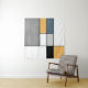 Abstrakte moderne Kunst mit bunten (marineblau, grau, schwarz, gelb, weiß) Rechtecken im mondrianischen Stil auf weißem Hintergrund