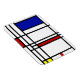 Mondrian Modern Art hat einen Bereich wie Komposition 10 von Pieter Piet Mondrian in rot , blau , gelb , schwarz und weiß , die bekannteste der De Stijl Kunstbewegung , die drei Primärfarben mit schwarzen Linien auf weißem Hintergrund verwendet hat