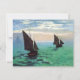 Monet Fischerboote an den Seeeinladungen. Ölmalerei auf Leinwand ab 1868. Monet malte Fischerboote häufig. Diese Jachthafenmalerei ist eins seiner frühen Werke und zeigt seine Fortschritte hinsichtlich des Impressionismus. Drei Fischerboote segeln über Meergrünwellen mit den Wolken des frühen Morgens, die oben schwimmen. Ein hübsches Geschenk für Fans von Malereien Claudes Monet, Oceanscapes und des Fischerbootes.