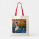 Tote Tag mit Claude Monets Ölgemälde Camille Monet und einem Kind im argentinischen Künstlergarten (1875). Eine Frau und ein Kind in blauer Nähte und lesen in einem Garten mit rot-weißen Blume. Ein großartiges Monetgeschenk für Fans von Impressionismus und französischer Kunst.