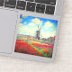 Aufkleber mit Claude Monets Blume- und Windmühle-Malerei. Schöne und farbenfrohe Felder mit roten, rosa und gelben Tulpen neben einer Windmühle und einem Haus in Holland. Ein großartiges Monetgeschenk für Fans von Impressionismus und französischer Kunst.