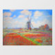 Fensterverzierung mit Claude Monets Blume und Windmühle. Schöne und farbenfrohe Felder mit roten, rosa und gelben Tulpen neben einer Windmühle und einem Haus in Holland. Ein großartiges Monetgeschenk für Fans von Impressionismus und französischer Kunst.
