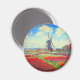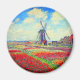 Magnet mit Claude Monets Blume und Windmühle Gemälde. Schöne und farbenfrohe Felder mit roten, rosa und gelben Tulpen neben einer Windmühle und einem Haus in Holland. Ein großartiges Monetgeschenk für Fans von Impressionismus und französischer Kunst.