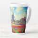 In der Tasse finden Sie die Blume und das Gemälde von Claude Monet. Schöne und farbenfrohe Felder mit roten, rosa und gelben Tulpen neben einer Windmühle und einem Haus in Holland. Ein großartiges Monetgeschenk für Fans von Impressionismus und französischer Kunst.