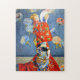 Puzzle mit Claude Monets Ölgemälde La Japonaise (1876). Camille Monet trägt ein japanisches Kostüm vor einer Wand, die mit japanischen Fans dekoriert ist. Ein großartiges Geschenk für die Fans der japanischen und französischen Kunst.