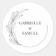 Dieser Hochzeitsaufkleber bietet ein sauberes und minimales Design mit einer Grafik von einem halben Kranz auf einem weißen Hintergrund. Personalisieren Sie mit den Namen der Braut und des Bräutigams.