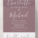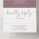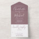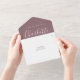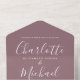 Alles in einer Hochzeitseinladung mit elegantem Schriftnamen und Monogramm-Initialen auf mauvem Hintergrund. Die Einladung enthält eine perforierte RSVP-Karte, die für Sie individuell adressiert oder links als leere Karte für die Handschrift der Adressdaten Ihres Gastes verwendet werden kann. Entwickelt von Thisisnotme©