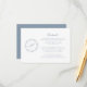Dieses Hochzeitsdesign zeichnet sich durch ein elegantes Skript-Monogramm aus, das durch einen Kunstschrei aus staubblauem Blattwerk auf weißem Hintergrund gerahmt wurde. Das Wort "Details" erscheint oberhalb des anpassbaren dustigen blauen Textes.
