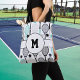 Sportliche Tischtennis-Tasche auf Monogramm mit einem stilvollen Muster aus Tennisschlägern und Bälle in Schwarz, Grau und aquamarin. Ideal für Tennisspieler, Trainer und Fans, um Ausrüstung, Snacks oder persönliche Gegenstände für Spiele, Übungen oder Turniere zu tragen. Passen Sie Ihren Initial oder Namen für eine persönliche Touch an. Macht ein nachdenkliches Geschenk für Geburtstage, Teamfeiern oder Tennisfreunde. Dauerhaft und vielseitig für sowohl auf als auch außerhalb des Hofes.