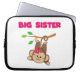 Ein niedlicher Affe mit einer rosa Blume, die von ihrem Schwanz aus einem Ast schwingt, und rosa Text liest "Big Sister" auf großen Schwesterinnen-T - Shirt, Schlüsselketten, Karten, Aufklebern, Totensäcken, Magneten, Mousepads, Kissen und anderen großen Schwesterkleidern und Geschenken!