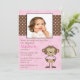 Start your party off right with our cute Monkey holding a cupcake Foto Birthday Einladung featuring a cute monkey holding a huge pink cupcake. So cute and perfekt for any age birthday party. Just personalize with your information and your foto and you're all set to go! Matching items including birthday postage stamps, favor stickers, thank you cards & thank you stickers are also available in our shop.