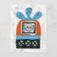 Das skurrile Design besticht durch eine stilisierte, in einem Quadrat umschlossene Affenwand, umgeben von kühnen Farbblöcken und abstrakten Formen. Der Hintergrund besteht aus strukturierten Weiß- und Grautönen, die die spielerische Komposition verstärken.