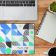 Ce tapis de bureau moderne est décoré d'une motif géométrique colorée dans les tons noir, bleu et vert sur le blanc. Personnalisez-le avec le nom dans le coin inférieur droit.