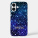 Whimsical stylish iridescent blauen Glitzer Monogramm mädchenhafte Iphone Gehäuse. Inspiriert vom Nachthimmel, hat dieses iPhone Gehäuse ein holografisches Design mit Imitaten Glitzer in den Sterntönen Blau und Grau. Der himmlische Funkeleffekt erzeugt einen himmlischen Look und fügt dem Handy eine mädchenhafte und mystische Touch hinzu. Es ist die perfekte Geschenkidee für einen süßen 16 Geburtstag, Hochzeit, Brautparty, Jubiläen, Babyduschen oder Junggeselinnen-Abschied, Valentinstag, Weihnachten oder als Geschenk im Allgemeinen. BITTE BEACHTEN SIE: Dies sind flache Druckgrafiken - kein echter Glitzer, Juwelen oder erhabene Teile.