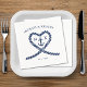 Blaue und weiße Hochzeitsnapkins. Ideal für eine Hochzeit der Marine (Militär) oder des Seehauses. Das Design besteht aus einem herzenförmigen Seil mit Anker und einigen Initialen in der Mitte. Personalisieren Sie es mit Ihren Hochzeitsdetails.