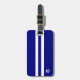 Dieses moderne Gepäckanhänger wurde für Männer entworfen und weist einen marineblau-blauen Streifen mit zwei weißen Streifen auf marineblau blauem Hintergrund auf. Ihr Monogramm erscheint unten und Sie können das Tag mit Ihrem Namen, Adresse und Telefon auf der Rückseite anpassen. Copyright Kathy Henis