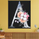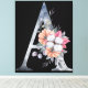 Monogramm A mit floraler Blues auf schwarzer Leinwand Art