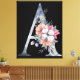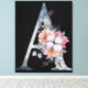 Monogramm A mit floraler Blues auf schwarzer Leinwand Art