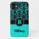 Moderne mit Monogramm türkisblaue, schwarz-weiße Damasle mit weißem Schachbrettakzent Case-Mate iPhone 11 Gehäuse können mit Ihrem Logo, Namen, Initial- oder anderen Texten angepasst werden. Wenn Sie Hilfe benötigen, senden Sie eine E-Mail an niteowlstudio@gmail.com.