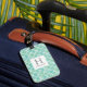 Dieses niedliche und moderne monogramm Gepäckanhänger hat ein trendiges aqua grün und weiß Aquarellmuster und den Anfangs- und Namen Ihrer Wahl.