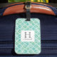 Monogram Aqua Green Quatrefolien Muster Gepäckanhänger