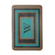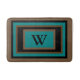 Monogramm initial in Mitte in schwarzer Typografie. Geometrisches Blockmuster Aquamarin grün mit braunen und schwarzen Rechtecken. Original Design von TamiraZDesign.