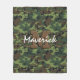 Personalisierte Armeekinder fleece Decke mit einem Tarnhintergrund, ihre Initialen in einem 3D-Effekt und Namen in einem boykottierten Skript-Schriftart.