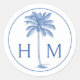 Monogram aus Blue und White Palm Palmetto Tree Runder Aufkleber