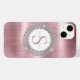 Pink Metal Diamonds Monogram Funkelnd Luxuriöse Case-Mate iPhone 14 Case. Luxuriöses Design mit rosa Metallic-Look und einem anpassbaren Monogramm und Namen umgeben von schönen funkelnd Diamanten. Ideal, um sich anzuhören! Dieses Design ist hübsch und weiblich.