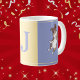 Personalisieren Sie diese Tasse mit Ihrem eigenen Initial, dem Ihres Hundes oder dem ersten einer anderen Person, um sie dann als Geschenk zu geben. Dies ist eine lustige, farbige Tasse mit einem gelben Quadrat zwischen zwei blau-lila Quadraten mit kleinen Linien oben und unten (entweder gelb oder weiß, je nach Farbquadrat, den sie überqueren). Auf beiden Seiten der Tasse ist eine Abbildung eines Aussie, die in die Luft springt. In der Mitte (im gelben Quadrat) ist ein Platz für Sie, um sich mit einer Initial anpassen. Dies ist ein tolles, individuelles Geschenk für jeden Hundefreund oder australischen Hirtenbesitzer. Es wird eine nette, helle und fröhliche Ergänzung zu Ihrer Küche.