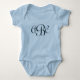 Monogram Baby Shirt in blau mit marineblau Monogramm und Script-Schriftart.