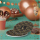 Monogram Deko-Fan-Blume aus Party-Papierservietten für Schwarz und Gold. Das Design zeichnet sich durch ein sich wiederholendes Schwarz-Gold-Lüftermuster und ein individuelles Initial aus. Motiv im Gatsby-Stil der 20er Jahre.