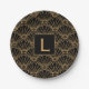 Monogram Black and Gold Art Deco Lüftermotiv Blume Pappteller