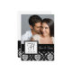 Elegante Schwarz-Weiß Akzente Farbe mit schwarzem Monogramm mit Vintagem Schwarz-Weiß-Damaskus-Muster Save the Date Flachkarten mit Ihrem Verlobung-Foto. Entwurf des Layouts von Elke Clarke©. lizenzierte Grafiken. Passen Sie Ihre Verlobung an, indem Sie Foto, persönliche Informationen und Save the Date Nachrichten auf der Rückseite einfügen. Personalisierbar. Klicken Sie einfach auf die Schaltfläche "CUSTOMIZE"
