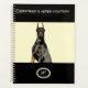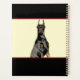 Zurück zur Schule. Black Doberman Pincher mit bräunlichem Hintergrund. Das ist ein digitales Acrylgemälde für den seriösen Schüler.