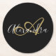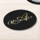 Monogram Black Gold Elegant Script Name Runder Pappuntersetzer