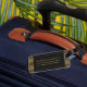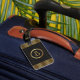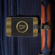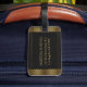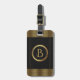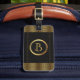 Elegantes, Vintages, schwarzes Leder mit geometrischen Goldtönen als Randakzent. Maßgeschneidertes Monogramm mit cool passendem Gold- und Schwarzlederkreis. Es ist in Brauntönen gehalten und kann in jeder Farbe angefordert werden.