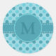 Monogram Blue Aquamarin Polka Dots Runder Aufkleber