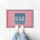 A trendy 24"x36" farmhouse doormat featuring a red & white buffalo check background and elegant white monogram initials on a textured blue denim print frame. Easily change the initials to make it yours using the Template provided. A smaller 18"x24" doormat is also available. Non-slip rubber that won't crack or buckle, this mat resists fading, mold, and mildew and can be easily cleaned with a hose. See "About This Product" at side for more information. TIP: change RGB initials to first and first name initials R&M for a wedding, anniversary, new home gift.